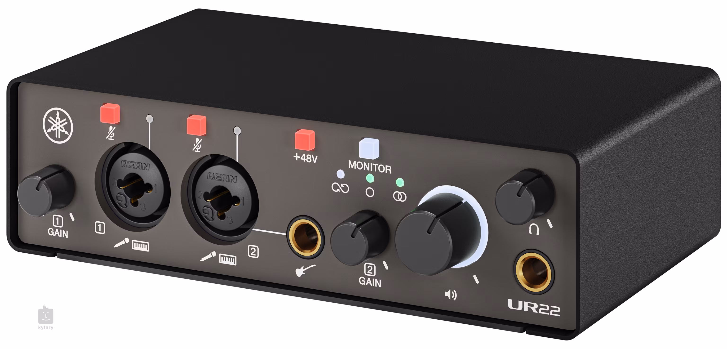 Rozhraní je vybaveno dvěma špičkovými mikrofonními předzesilovači Yamaha UR s +48V phantomovým napájením, které poskytují vynikající dynamiku a čistotu záznamu. Dvojice kombinovaných mikrofonních/linkových vstupů s tlačítkem Mute umožňuje flexibilní připojení mikrofonů, nástrojů či externích zařízení, zatímco Hi-Z vstup je určený pro přímé zapojení elektrické kytary nebo baskytary bez nutnosti DI boxu.