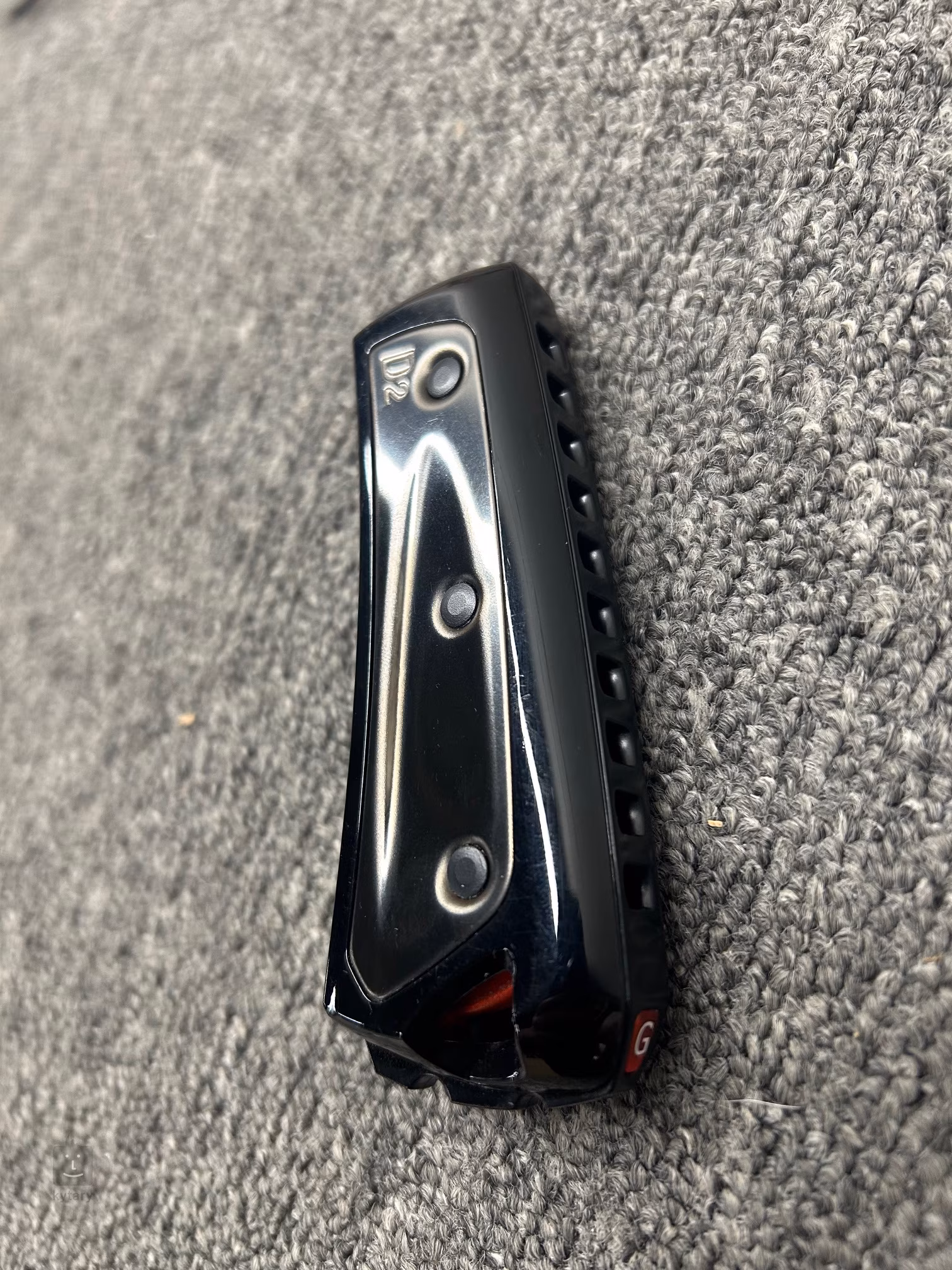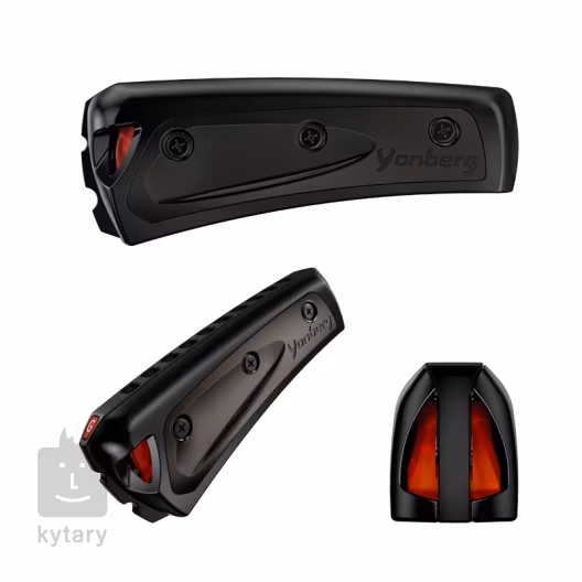 Black Typhoon G-major je diatonická harmonika s moderným dizajnom z dielne francúzskej značky Yonberg. Je to blues ladené v G dur (Richterovo ladenie) s nerezovými klávesmi (Gamma reeds), ktoré ponúkajú teplý silný a bohatý zvuk a výnimočnú odolnosť. Pevné kovové vrchné kryty v krištáľovo čiernej farbe sú vyrobené z nehrdzavejúcej ocele. Telo a kryt sú vyrobené z Tritanu, čo je ľahký, odolný a netoxický materiál bez zmäkčovadiel (BPA free).