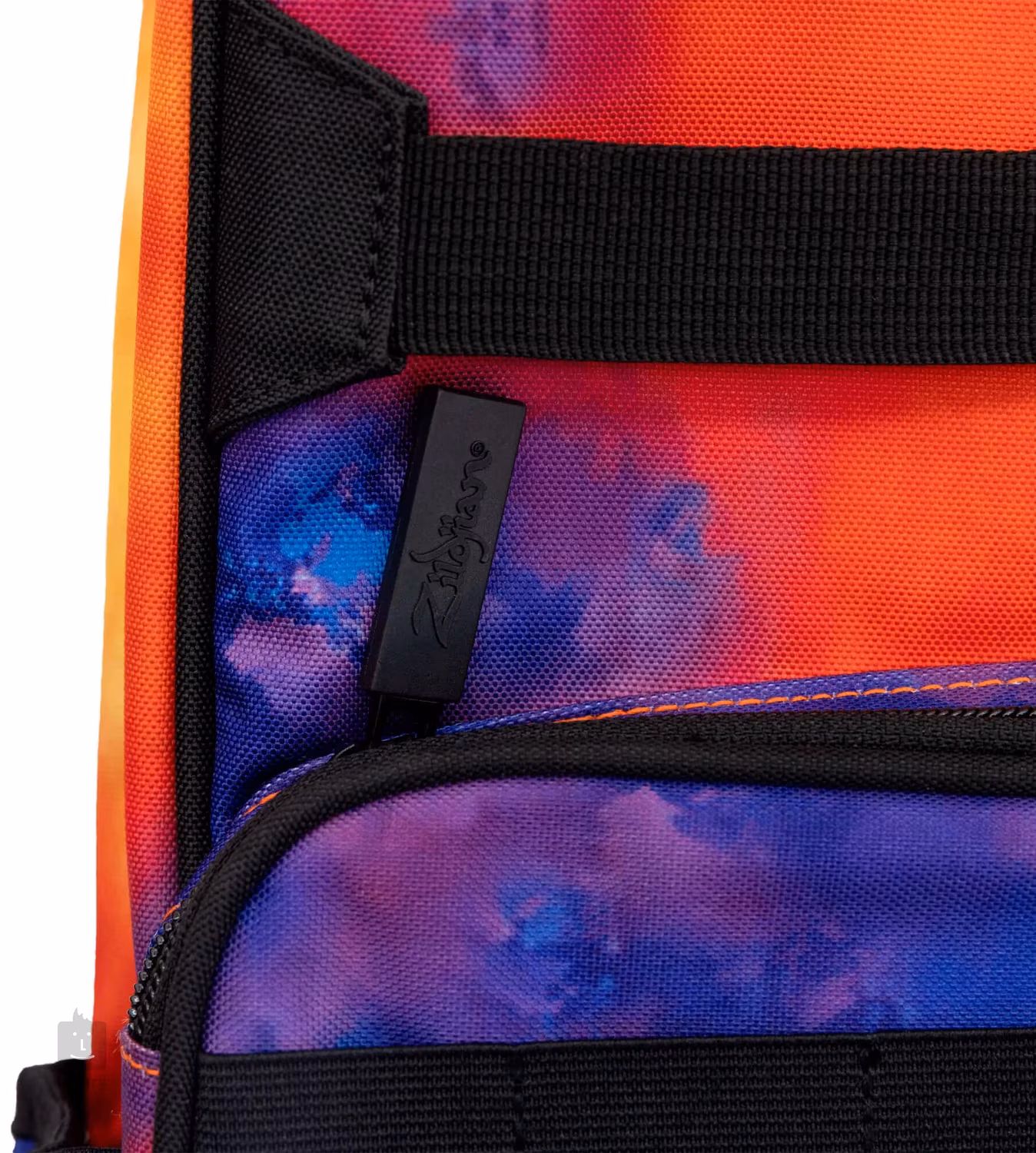 Legendárna americká spoločnosť Zildjian podporuje opätovné uvedenie obľúbenej série kovových činelov Z Custom batohom s puzdrom na paličku. Samotný batoh je vyrobený z pohodlného polyesteru, ktorý je potiahnutý veľmi pevným a nepremokavým nylonom. Je vybavený niekoľkými vonkajšími polstrovanými vreckami a veľmi priestranným interiérom so samostatnou priehradkou na notebook. Samozrejmosťou sú nastaviteľné chrbtové popruhy a bonus v podobe vonkajšieho otvoreného vrecka na fľašu.