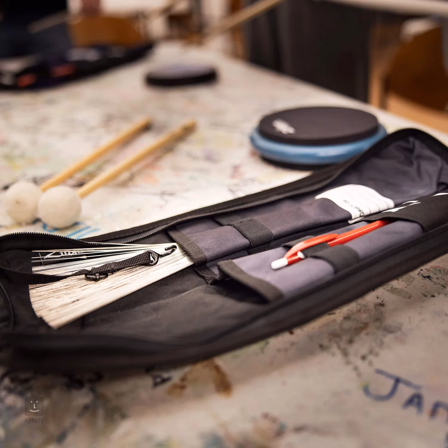 Legendárna americká spoločnosť Zildjian prichádza s praktickým a veľmi zaujímavým dizajnom bubeníckych paličiek. Je vyrobená z nepremokavého a pevného nylonu, má pútko na prenášanie a je polstrovaná pre maximálnu ochranu. Vnútro pojme až päť párov paličiek a má vrecko napríklad na ladiaci kľúč. Samozrejmosťou sú nastaviteľné popruhy s háčikmi na zavesenie na tomy.