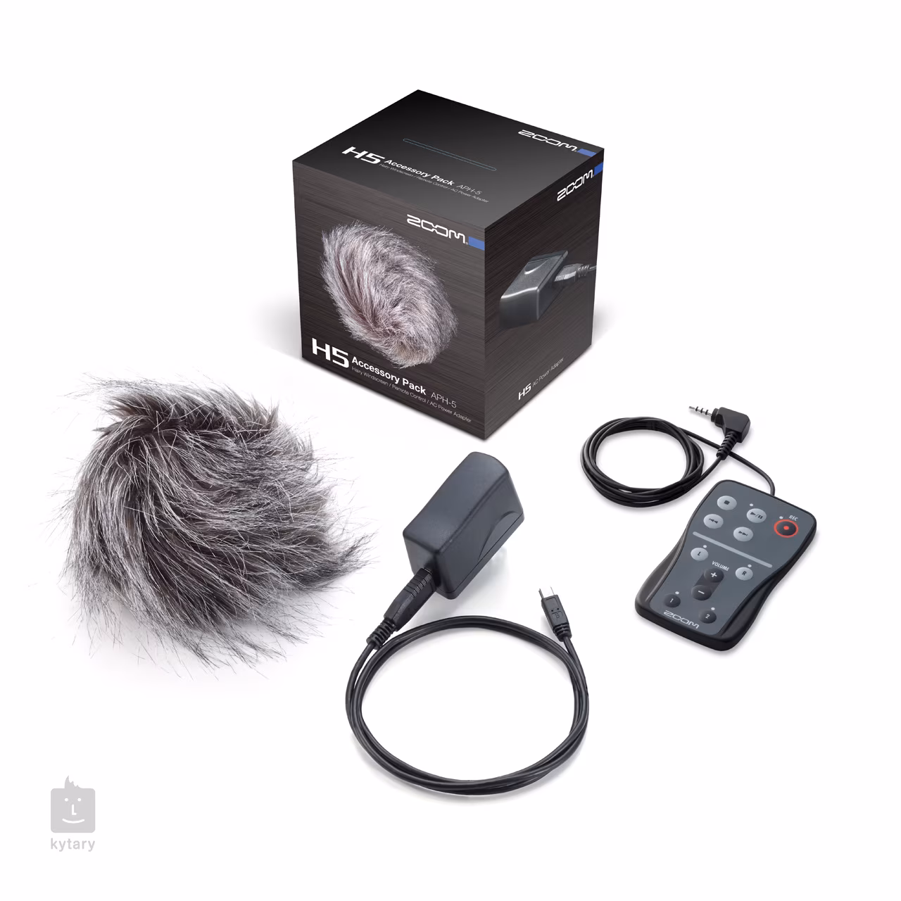 Súprava príslušenstva pre ručný diktafón Zoom H5. Balenie obsahuje diaľkový ovládač RCH-5, adaptér AD-17 s rozhraním USB a vetruvzdorný kryt mikrofónu.