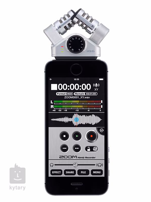 Zoom iQ6 ponúka aj ovládač MIC GAIN na nastavenie úrovne vstupného signálu, LED merač na monitorovanie signálu, kombinovaný slúchadlový/linkový výstup a konektor Lightning potrebný na pripojenie k zariadeniam iOS. S aplikáciou Zoom Handy Recorder navyše získate množstvo užitočných nástrojov, ktoré bežne nájdete len v nahrávacích zariadeniach.