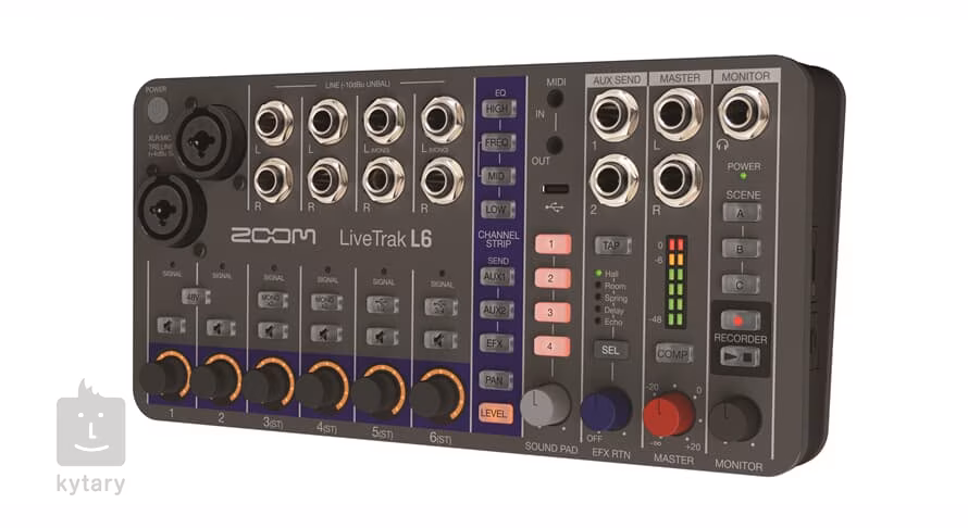 Zoom LiveTrak L6 je najkompaktnejší a najprenosnejší digitálny mixážny pult a rekordér. Vďaka nahrávaniu zvuku v štúdiovej kvalite, efektom, MIDI a zvukovým podložkám je ideálny pre kapely, hráčov na klávesy a syntetizátory, živé vysielanie a ďalších.